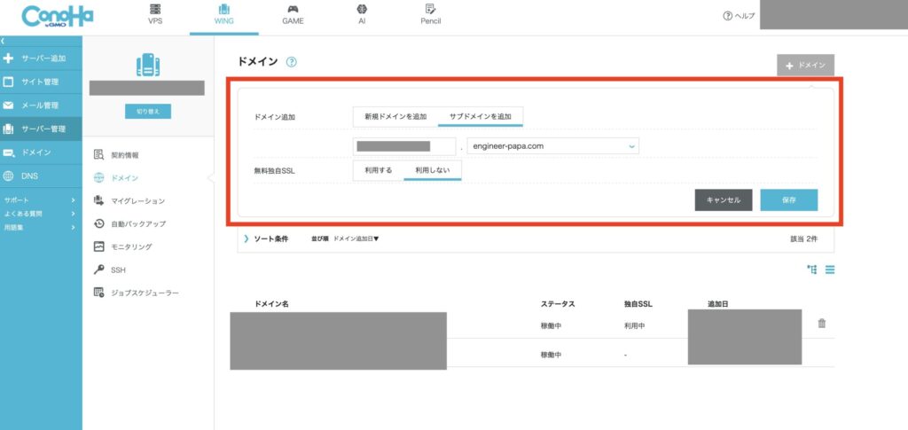 - サブドメイン:[サブドメイン].engineer-papa.com
