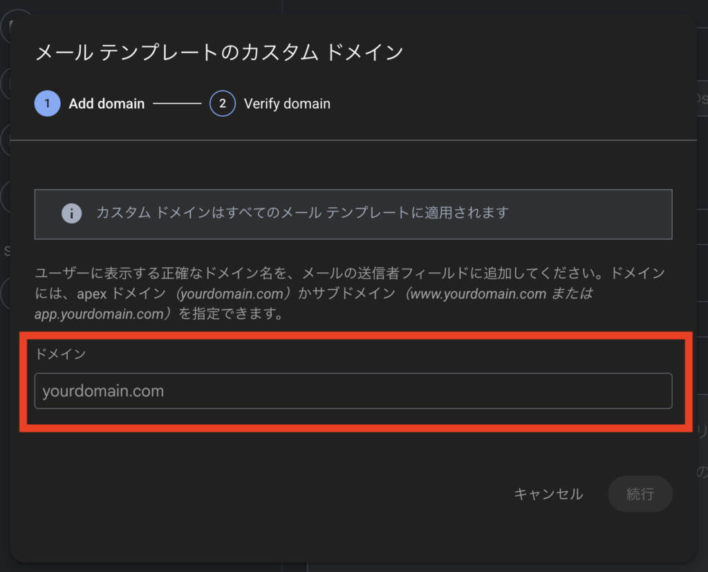 そこで試したのが、 自分が所有している独自ドメインのサブドメインを作成し、 Firebase Authentication のカスタムドメインに設定する方法です。